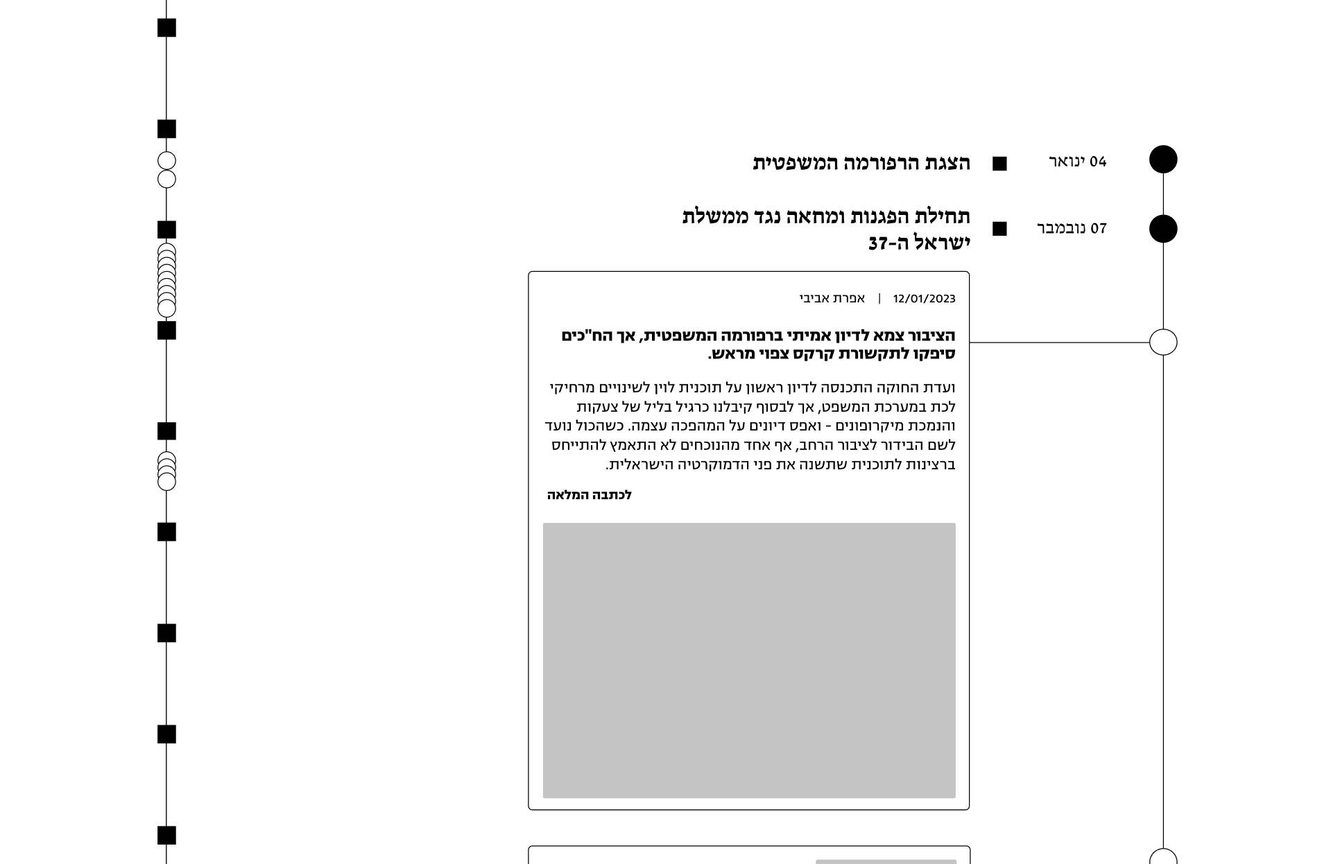 An interactive timeline platform designed for Shakuf, an independent news organization.